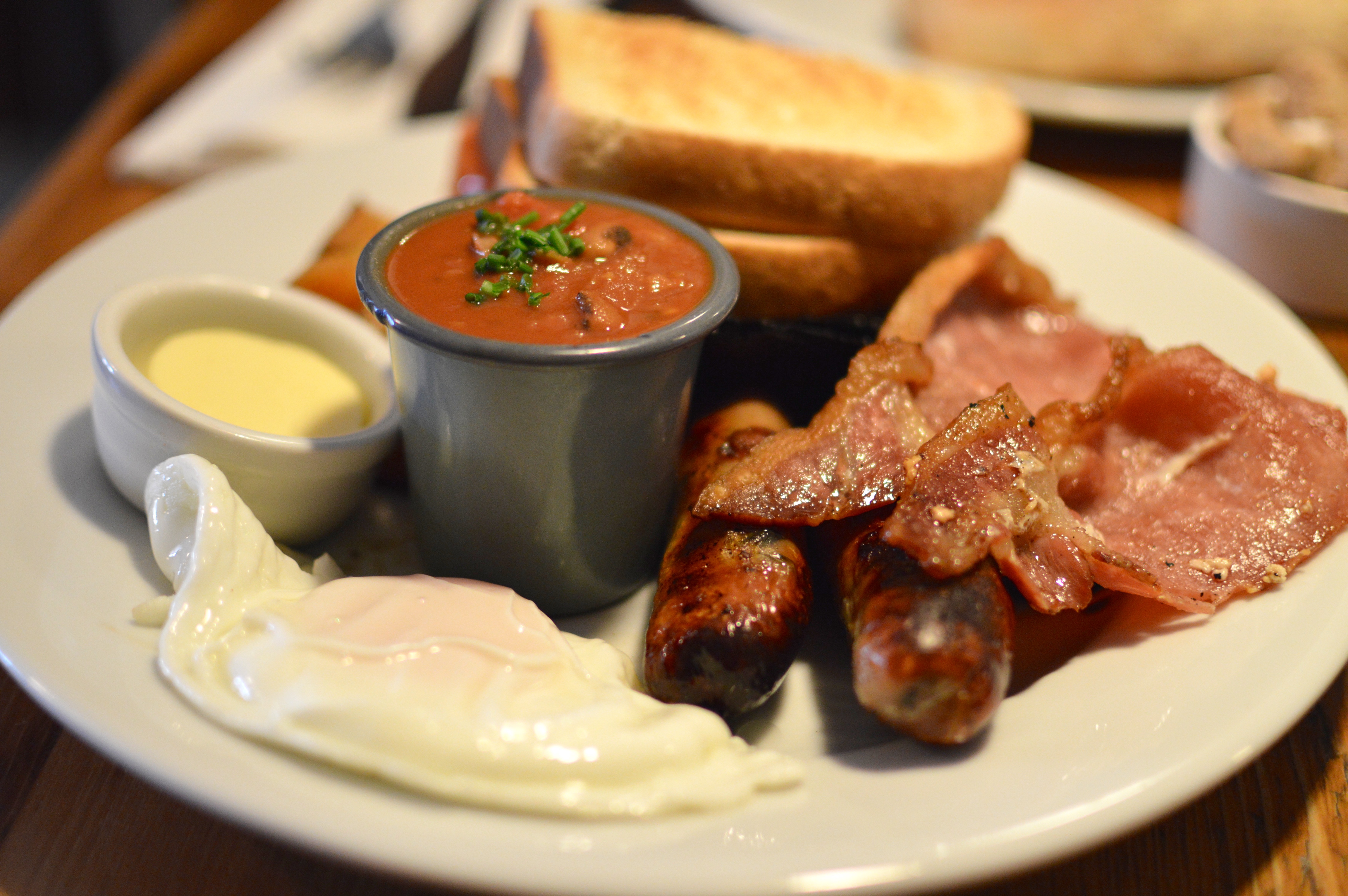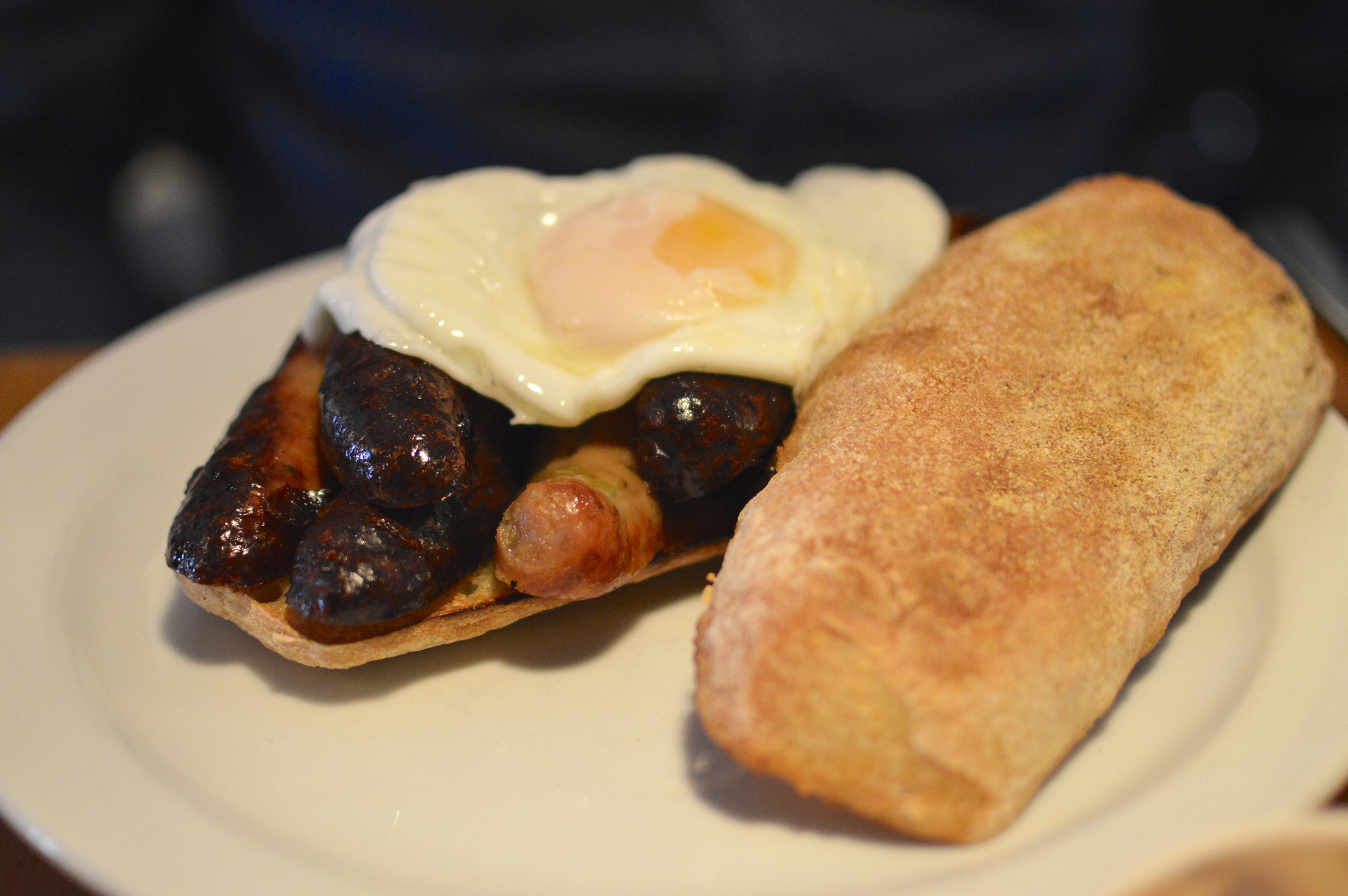 When the food arrived, I immediately felt a tiny (like, teeny tiny) bit guilty at the sight of white toast. It’s been ages since I’ve eaten white bread… not gonna lie, I was looking forward to it. Ankush was a bit shocked by the amount of sausages in the ciabatta. Luckily, we were hungry so cracked on and barely spoke to each other while we we got stuck in.