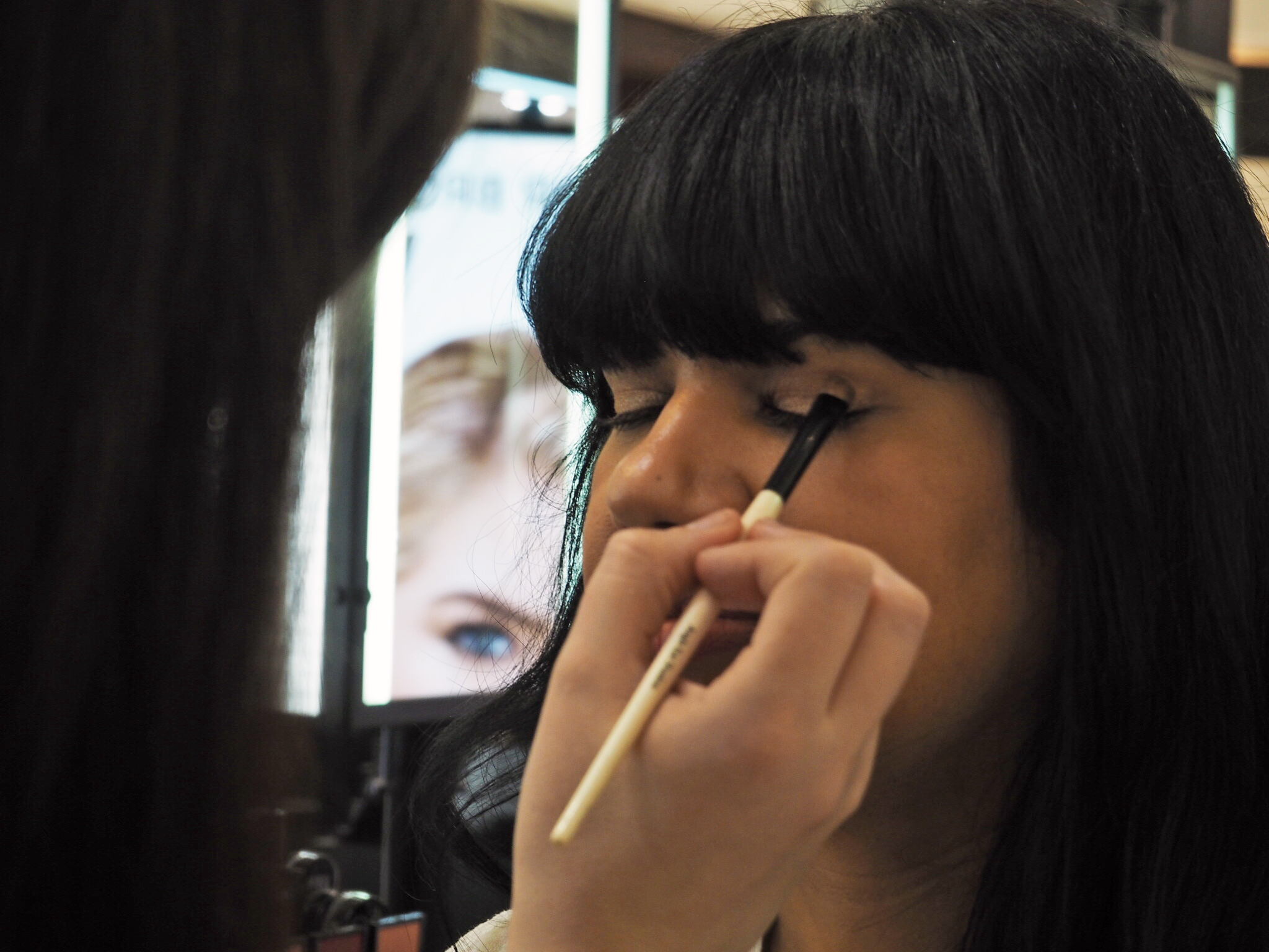 Once Suzy’s look was complete, Kate offered to do my eyes using the limited edition Sunkissed Gold Eye Palette. The 4 shades in the palette are lovely, there’s one light, matte shade to be used all over the lid, two medium shimmer-sparkly shades and one dark matte liner shade. Kate applied all of these to me, using the dark shade to line my lids. Thank you Kate!